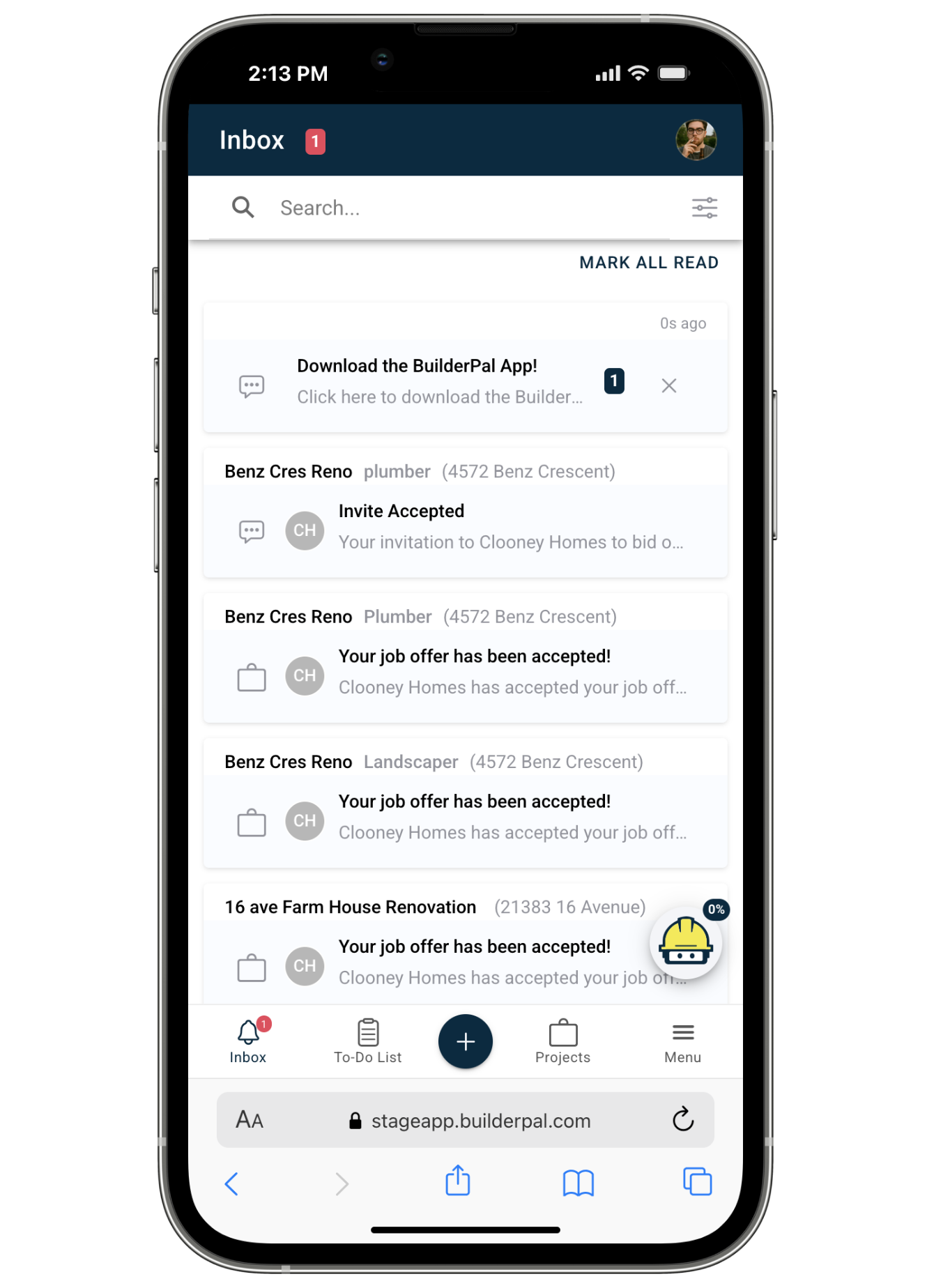 This guide walks you through the main areas of the BuilderPal mobile app so you know where everything is and how to move around quickly.