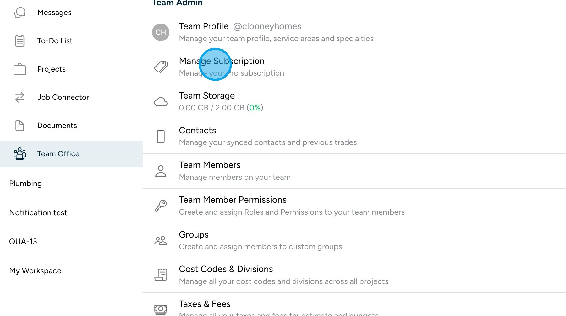 - Open Team Admin → Manage Subscription